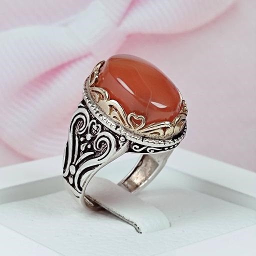 انگشتر مردانه نقره نگین عقیق یمنی